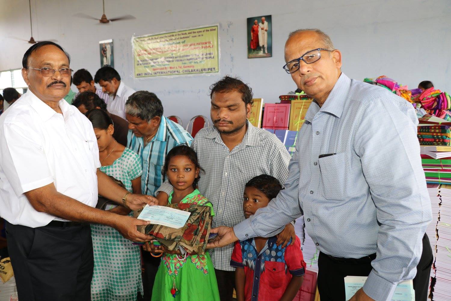 We had distributed Class Textbooks, notebooks, School uniforms and other study materials to nearly 1,800 students at AMG High School, Vadarevu, who are coming from the fishermen community living in Vadarevu and nearby villages. As the fishermen have to depend on catching fish in the sea, subject to weather conditions and as the quantity of fish is not certain to earn profits, they are poor or low-income group families. In its efforts to build the lives of these students, AMG is giving best education to these children, so that the children can complete their studies and compete and secure alternate occupations, instead of risking their lives for fishing in the sea. AMG provides them Breakfast and lunch and gives them education in English medium. We are grateful to our Donors, for helping these children in the school to study in English medium and improve their knowledge levels and hope to settle in alternate professions in their lives.