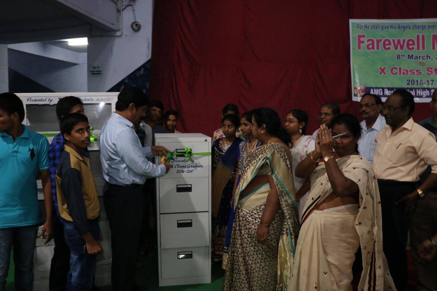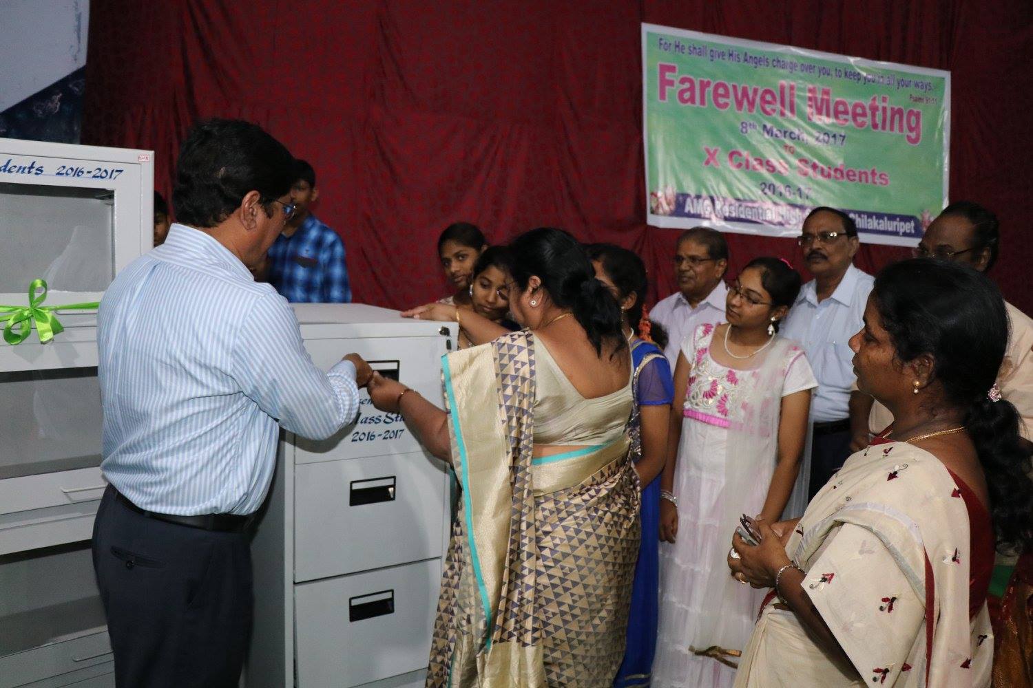 10th class students give gift of a File rack.- Inspired by the vision of AMG Founder, Bro. John David ayyagaru and the excellent services to the poor and needy by AMG Organization, the 10th class students, raised small amounts and donated one File rack, one Book rack and one steel sofa to the school. AMG Director, Mr. Jacob, Vice-President and the senior officers of AMG appreciated the students desire to contribute their mite towards AMG services and blessed the children.