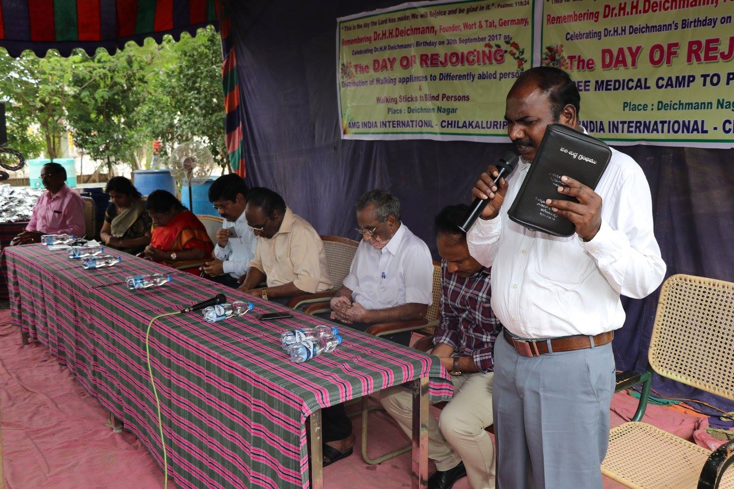 On the occasion of Dr. H. H. Deichmann the great Visionary and Founder of Wort & Tat, Germany, AMG staff organized a camp for the poor Physically and Visually Handicapped persons and Crutches and Walking sticks to help them in their mobility, on the occasion of the Day of Rejoicing, to share the joy of dr. H. H. Deichmann’s birthday with them. They thanked AMG staff for helping them.