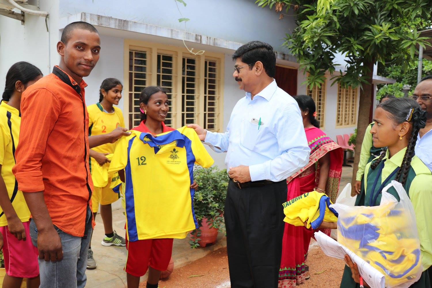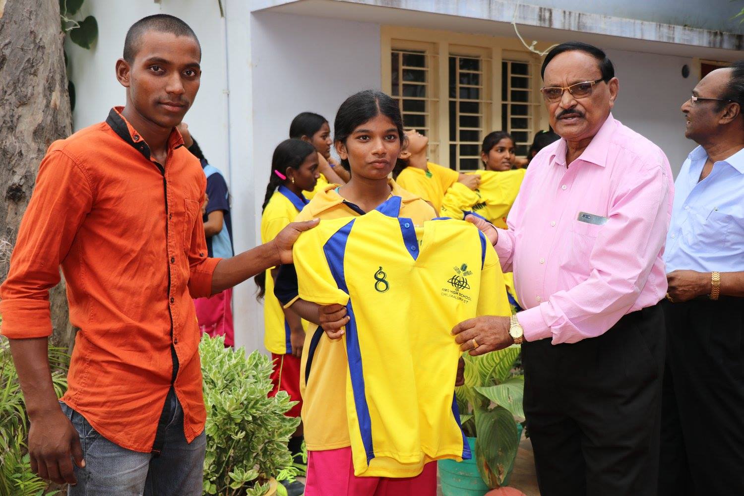 Mr. Nagarjuna studied in AMG High School and AMG Junior College and afterwards, joined in Indian Army. During his stay in AMG, he was very much impressed and influenced by AMG services to poor and needy people without any discrimination of Caste, Creed or Religion. In the last month, he came to AMG and donated Sports T shirts to AMG Soft ball players. Today, he gave sports dresses to AMG students Basket ball team. The children were happy and the HM and other officers appreciated his encouragement to AMG students and thanked Nagarjuna.