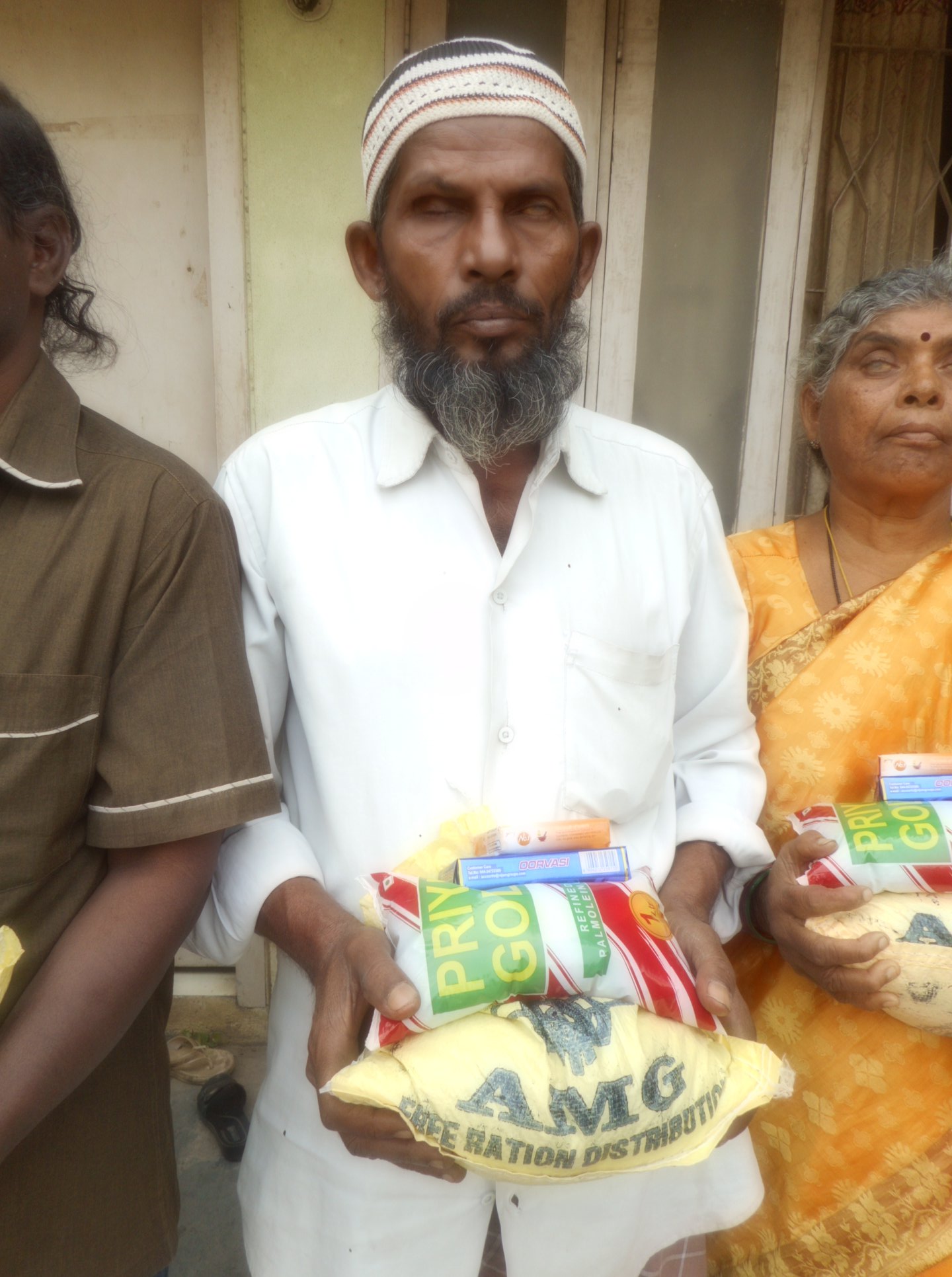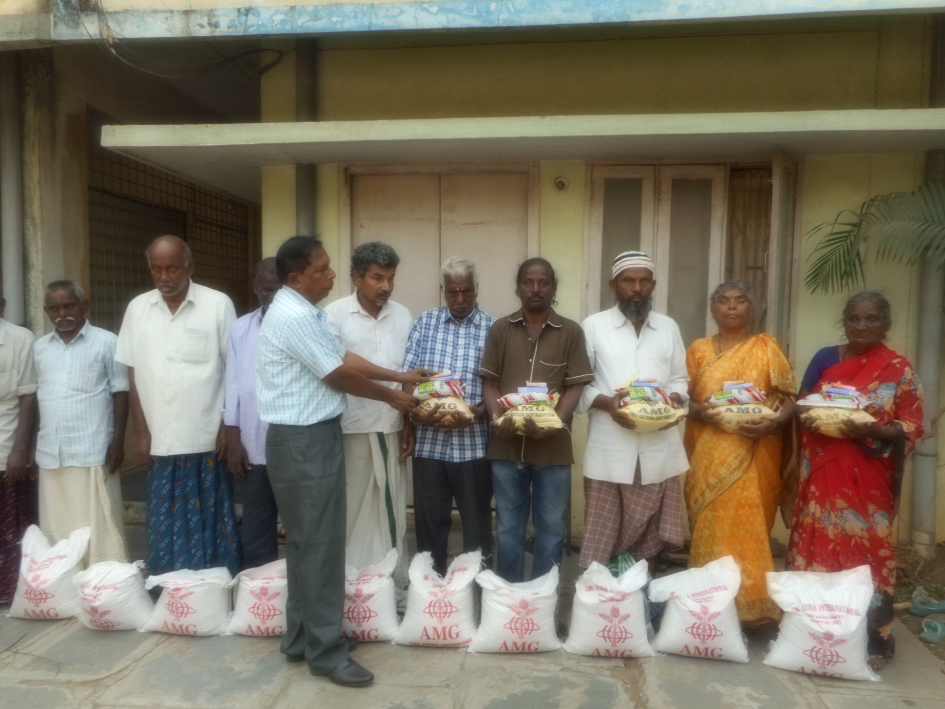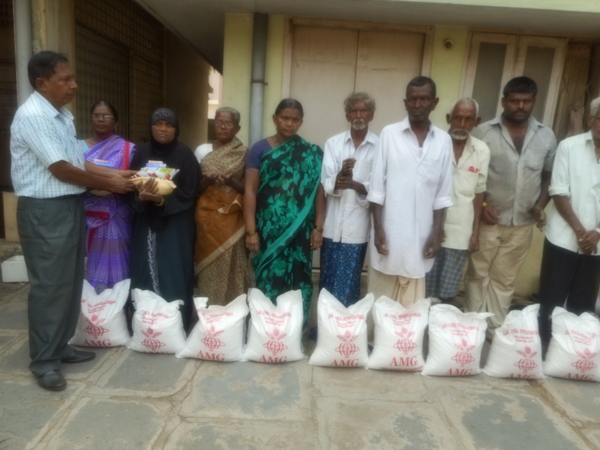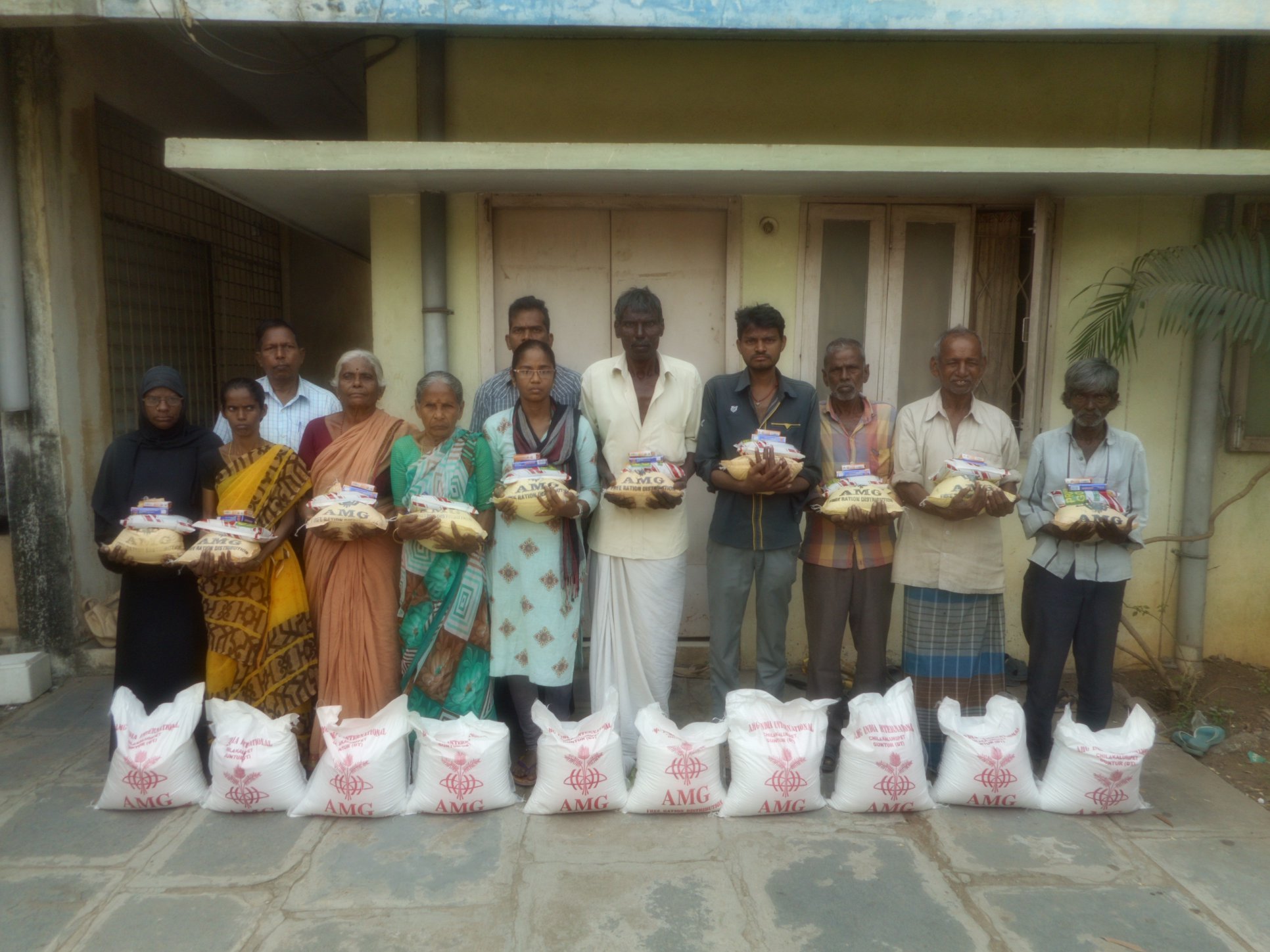 AMG is giving monthly food rations of Rice 10 kgs, Dall 2 kgs, cooking oil 1 liter, one Bath soap and one detergent soap, to Leprosy/ Visually Challenged Persons / PLWHA victims in many parts in Andhra Pradesh. As part of that programme, we have distributed the rations to 350 above victims in Guntur and Mangalagiri towns.
