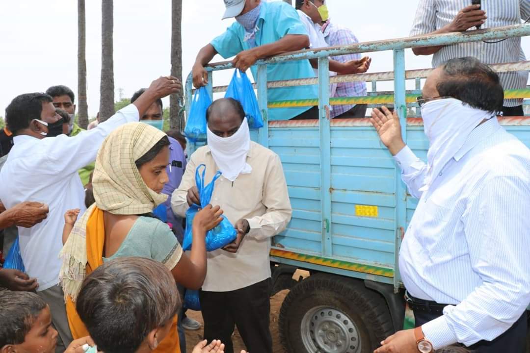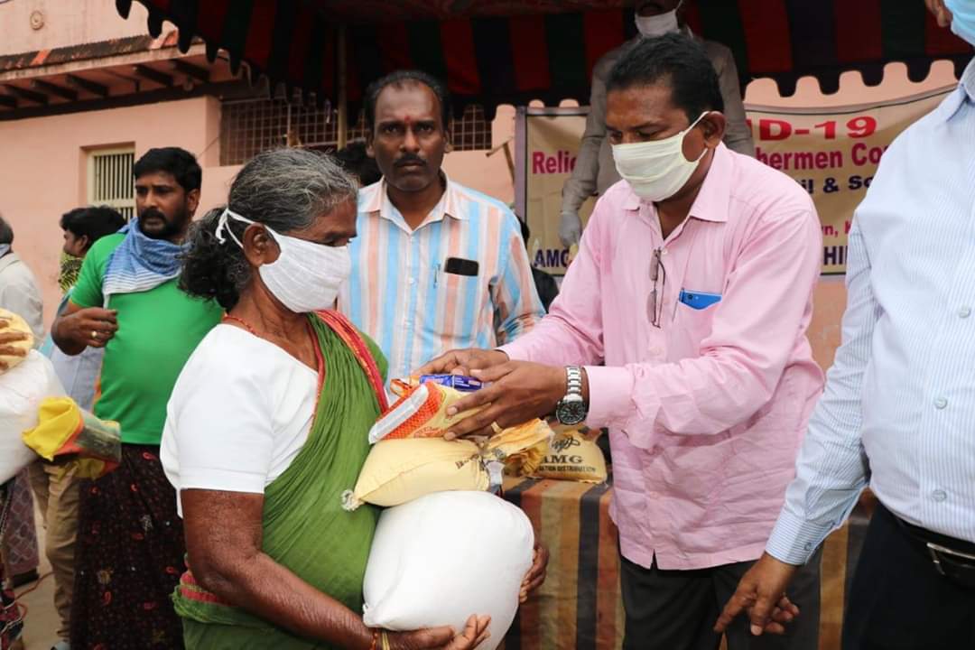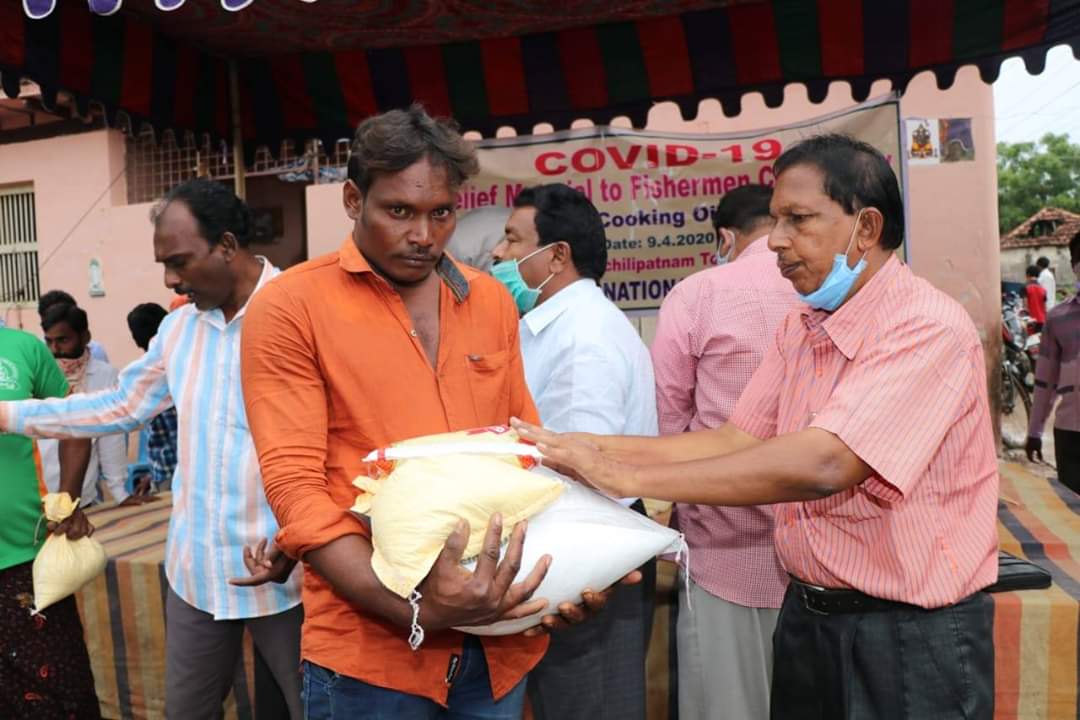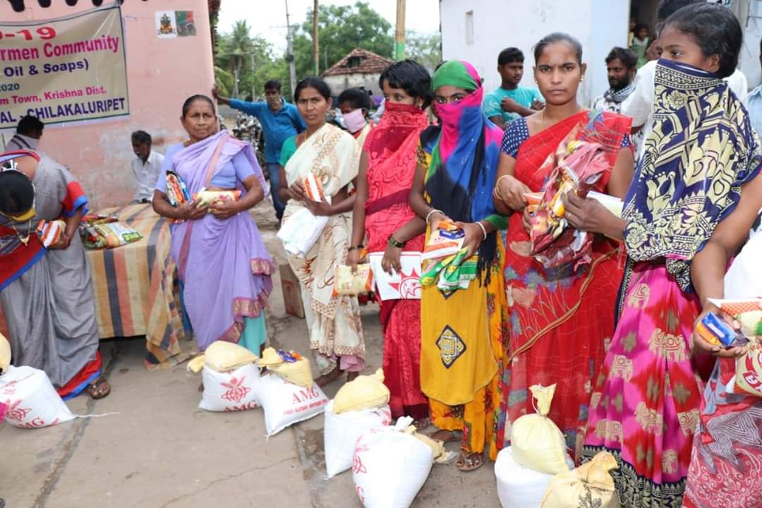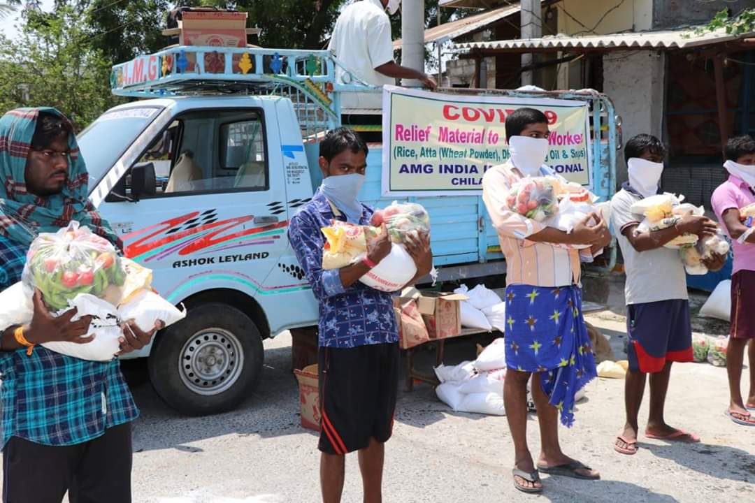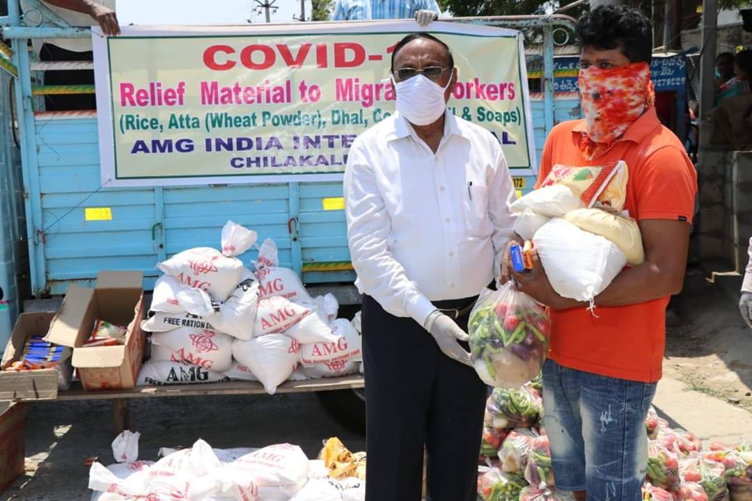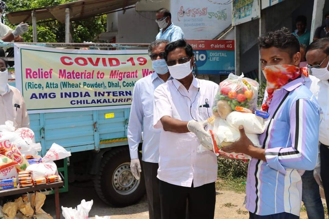 Migrant workers -from Odisha, Bihar and Jharkhand- came to different towns and villages in Guntur and Praksam districts to work in Granite quarries/ stone quarries/ agriculture/ and construction works. After the lockdown, these migrant workers started their journey back to their villages, but as the buses/ trains were cancelled, with a view to contain spread of Covid-19, they were stuck up in Chilakaluripet. They have no work and all money with them was exhausted and there is no one to feed. As they belong to other states, the Tahasildar, Chilakaluripet requested AMG to help them with Rice, Dal, Cooking oil, vegetables, soaps etc, so that they can cook food and do not starve. Today, we distributed the food items to these Migrant Workers.