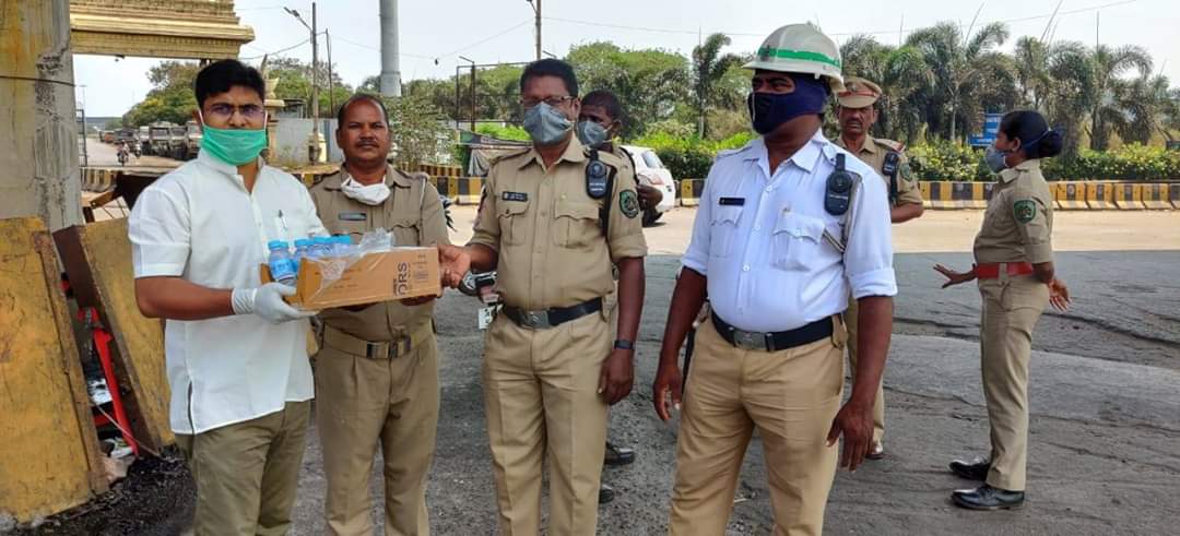 Policemen are working round the clock, to maintain Law & Order and to prevent spread of Covid-19, during the country-wide Lockdown, in towns/ villages to prevent unauthorized movement by people on the roads. Social/ physical distancing and cleanliness of persons and surroundings, are the key things, people in India should maintain to stop spread of COVID-19. Acknowledging the self-less services rendered by the policemen, we have given them Energy drinks and water bottles to help them fight dehydration due to summer heat.
