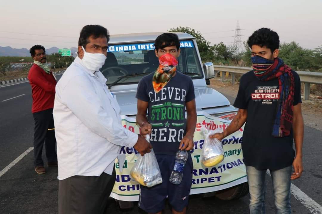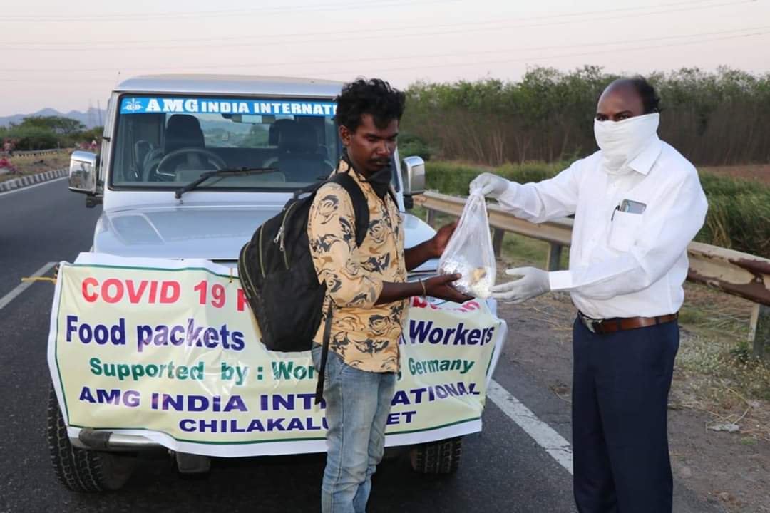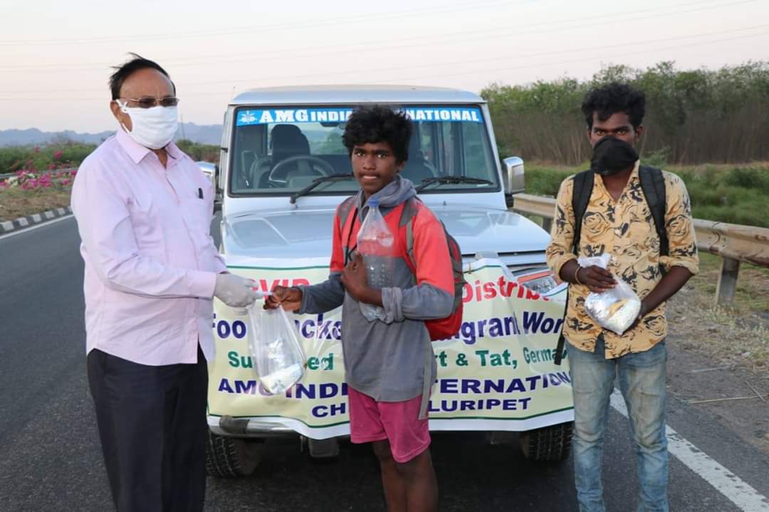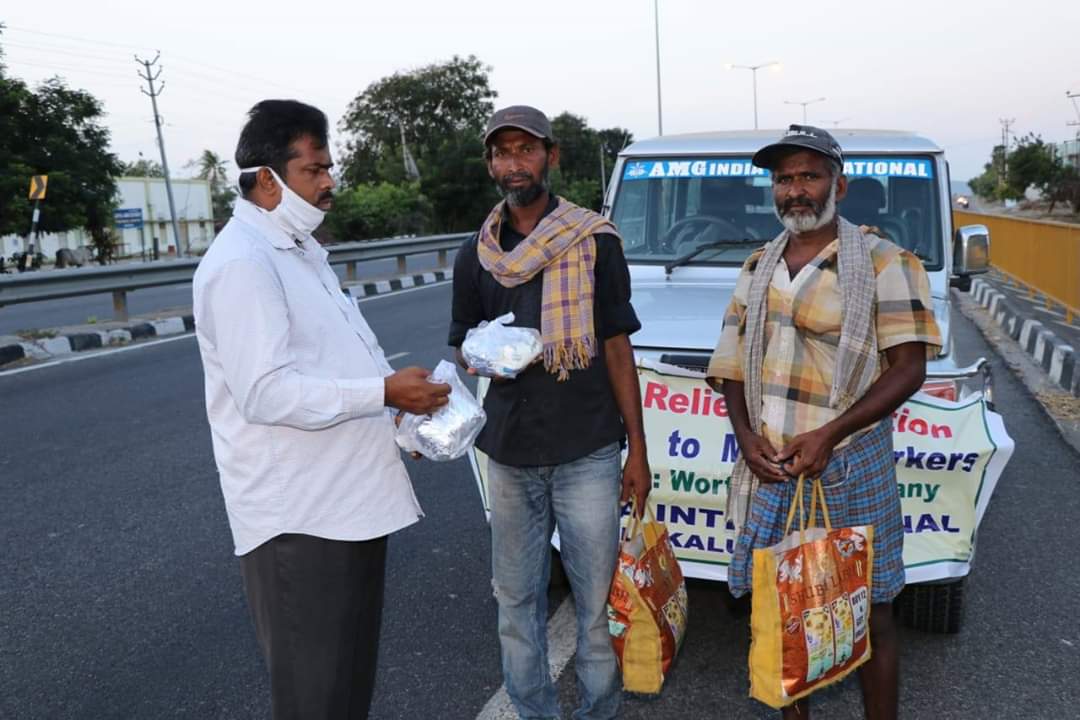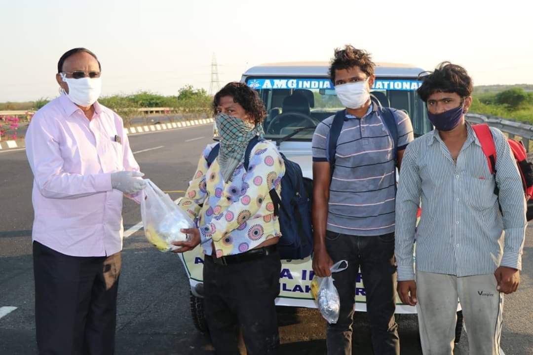 Some Students studying in distant Colleges and Migrant Workers are walking hundreds of miles and miles with the hope to reach their homes. We find many young students from different colleges, who were stuck up in College hostels in distant towns, because of country-wide lockdown due to COVID-19, have exhausted all their money and as the colleges and hostels are closed have no hope to stay in the place and decided to go walking to their native towns and villages, to meet their family members. Similarly, Migrant workers have waited for about a month and now are walking miles daily with hope to reach their native villages, so that they can meet and stay with their own family. AMG staff gave some of these people food packets and water bottles, so they do not fall down on the road due to hunger or thirst.