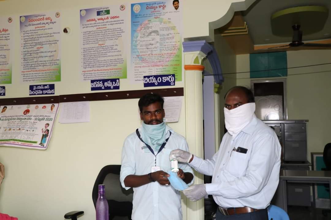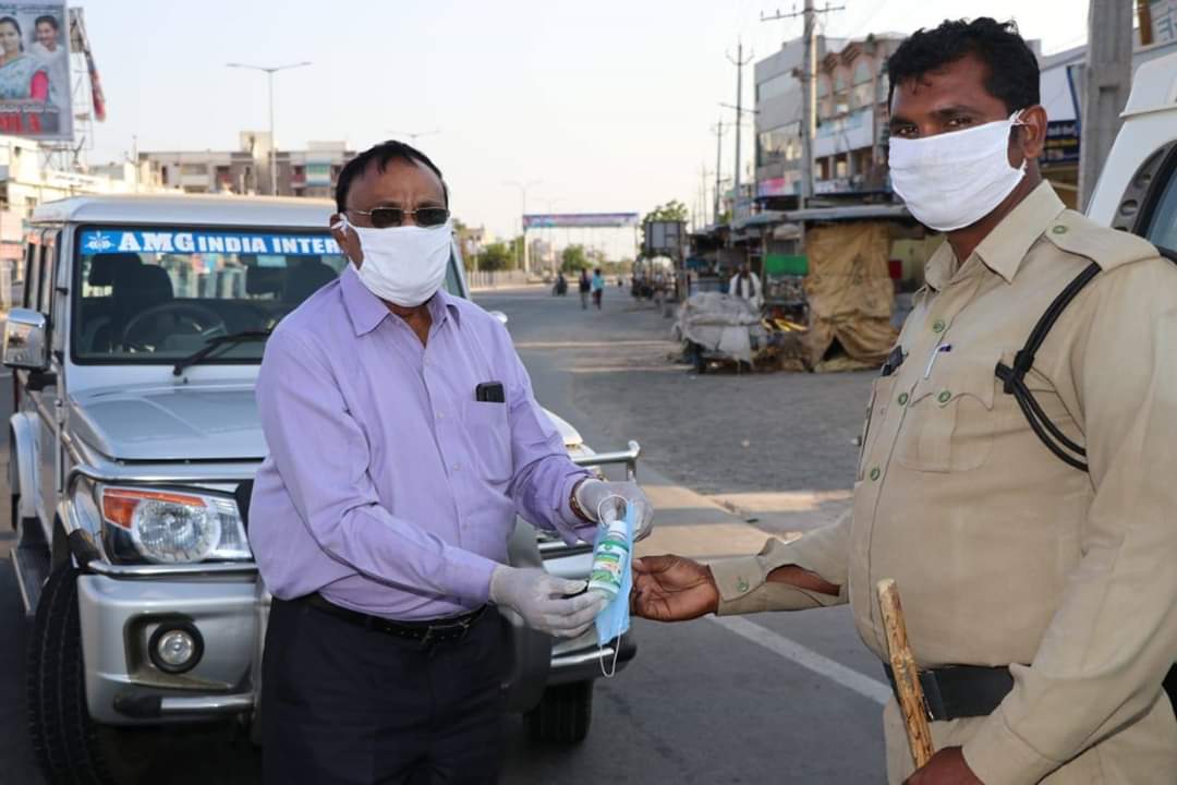 AMG staff gave facemasks and sanitizers to some Government staff and Policemen on duty, expressing our solidarity with them, as they are working selflessly and untiring to protect and save general public from Coronavirus. Two days back, one Doctor from Chilakaluripet was diagnosed as COVID- 19 + and was shifted to Hospital and the area where the doctor lived is blocked for others.