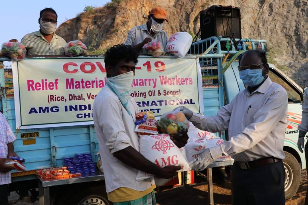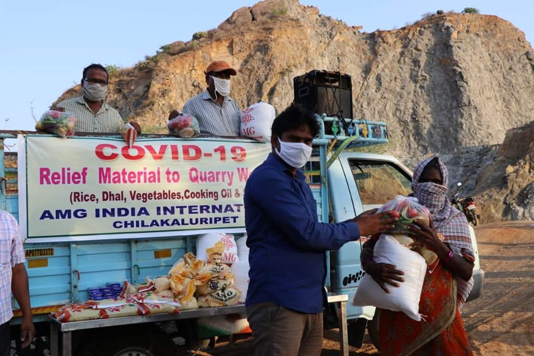 There are many stone quarries around Chilakaluripet. Many workers from Odisha, Bihar, Jharkhand states and other districts in AP come here to work. Due to countrywide lockdown, they have no work and no money. These workers are on the brink of starvation. AMG staff identified them and gave them Rice 10 kgs, Dal 2kgs, oil 1 litre, Sugar 1 kg, Salt 1kg and other cooking items needed by them to cook food and keep themselves safe. Because a weak body, cannot resist the virus. All the recipients were very thankful to AMG and Donors Wort & Tat, Germany.