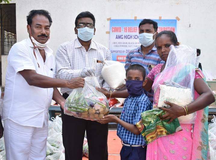 COVID 19 Relief material distribution to Patents of AMG School Children, Kakinada