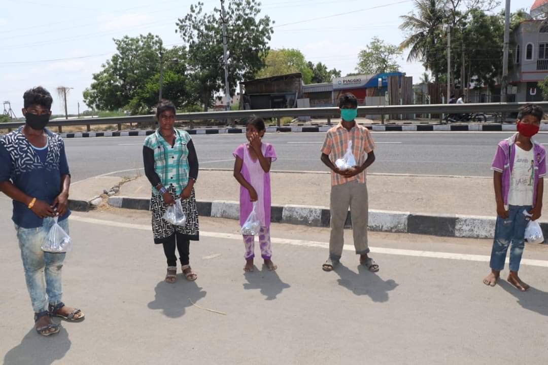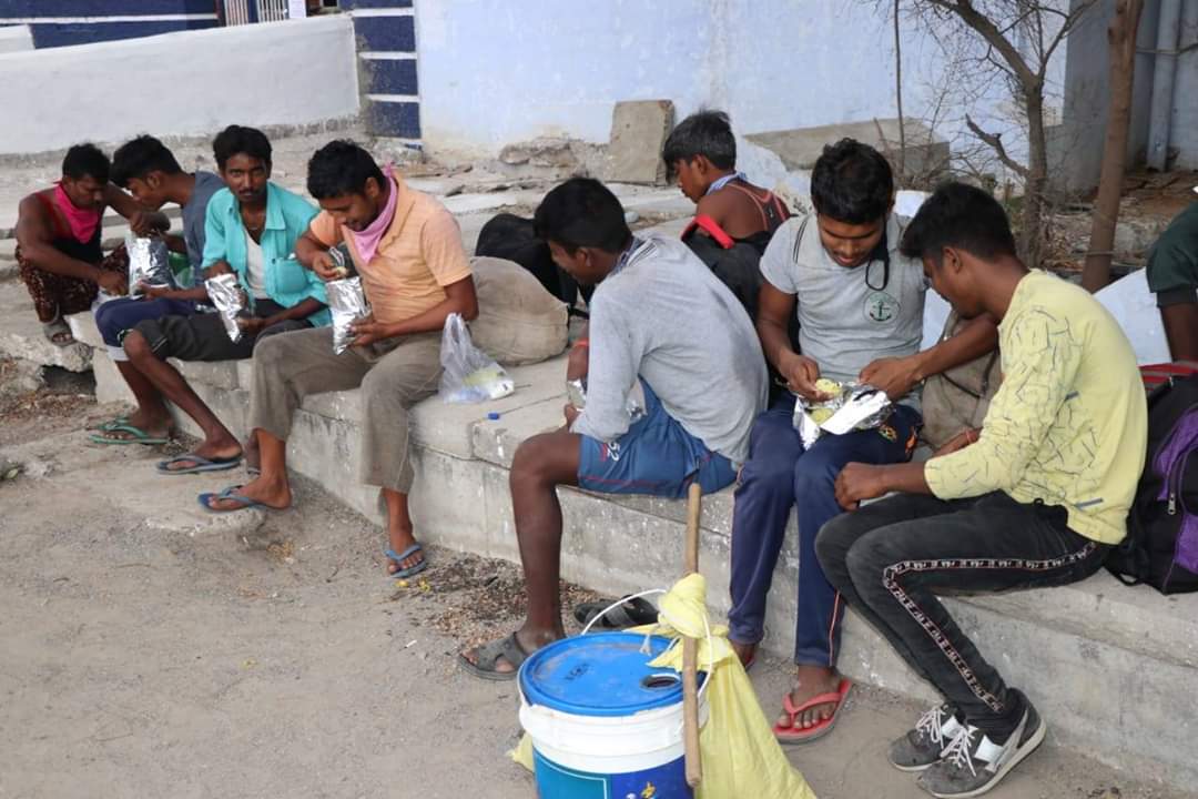 Daily, batches of migrant workers/ students are passing through Chilakaluripet on their long walk to their homes in other districts. Haunted by the fear of Coronavirus and with no work/ no money/ no place to stay etc, they began their long walk to go to their homes and are walking hundreds of kilometers. They have no money for food. We felt very sad, when we saw their faces, which reflect their hunger and despair. AMG gave them food and water packets. They are very grateful to AMG and Donors for their timely help.