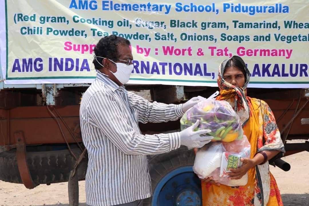 AMG supported by Wort & Tat, Germany is providing English medium education to children of socially & economically backward families, in 6 DCC Schools/centers, in Chilakaluripet. As these parents, who are unskilled and daily wage workers, are severely affected by the COVID-19 lockdown, as they could not go for work and did not get any income and were unable to feed themselves and children in the family. They were almost starving due to no income. In view of this, AMG staff went and gave 530 families, of children studying in AMG DCC Schools in Chilakaluripet, food rations to overcome lack of income and feed the family members.