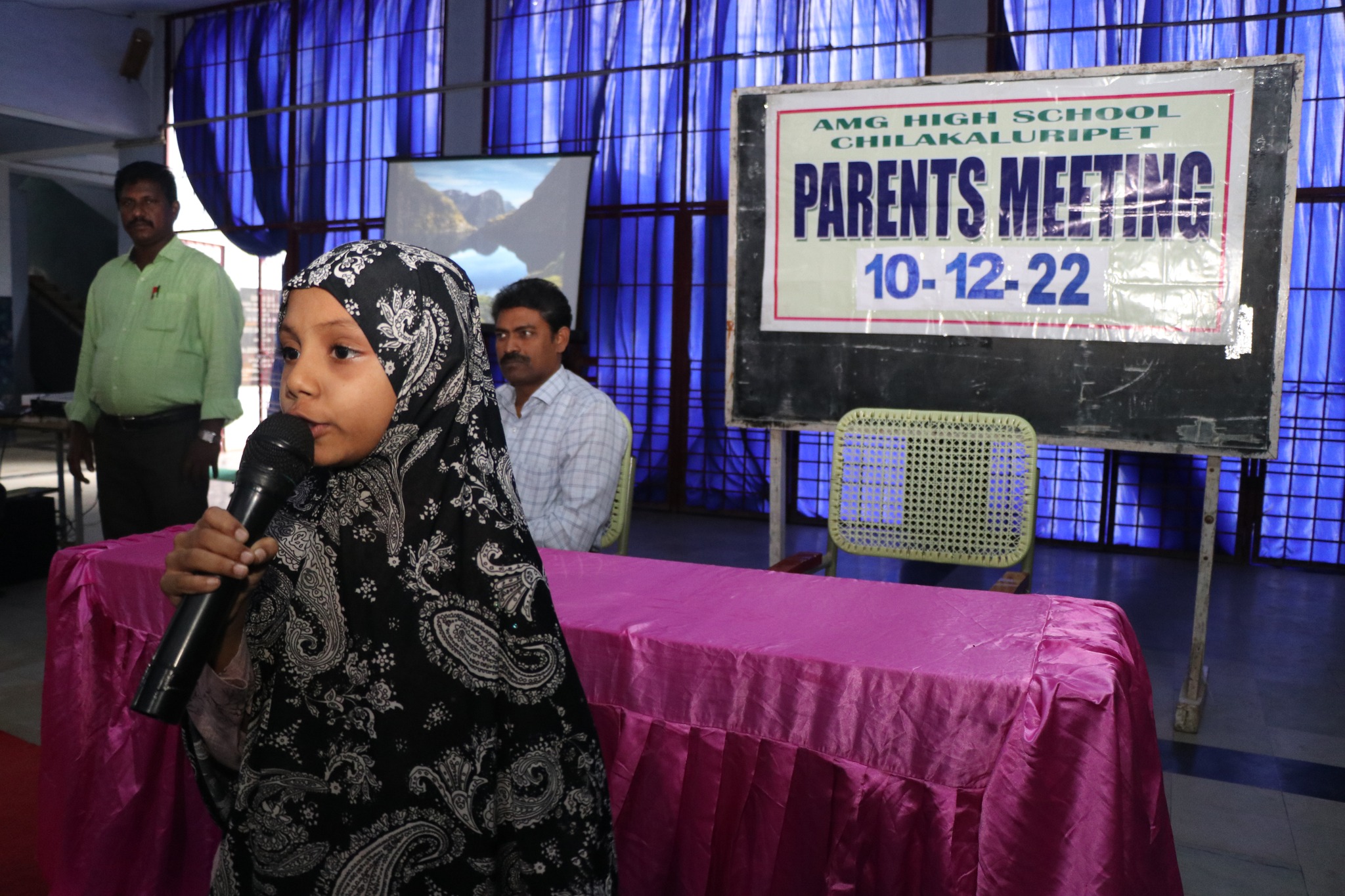 Parents meet was conducted in AMG High school, to develop closer relations between class teachers and parents and also to know the views and opinions of parents about their children development in studies and extra-curricular activities/ Character building/ Personality development traits the children learn in the school and to know what more can be done to meet the parent’s goals.