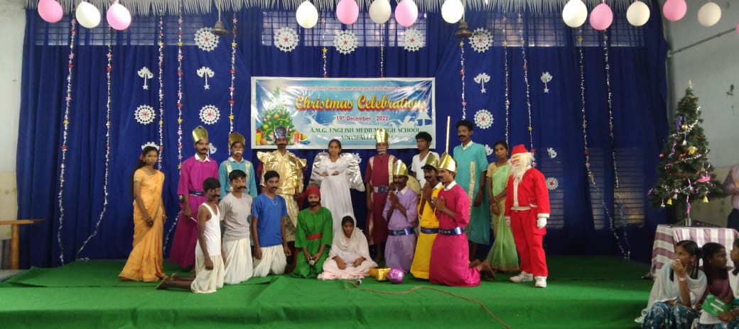 Staff and children of AMG School, Vadarevu, celebrated Christmas singing songs and sharing gifts and presented the birth of Jesus in a playlet.